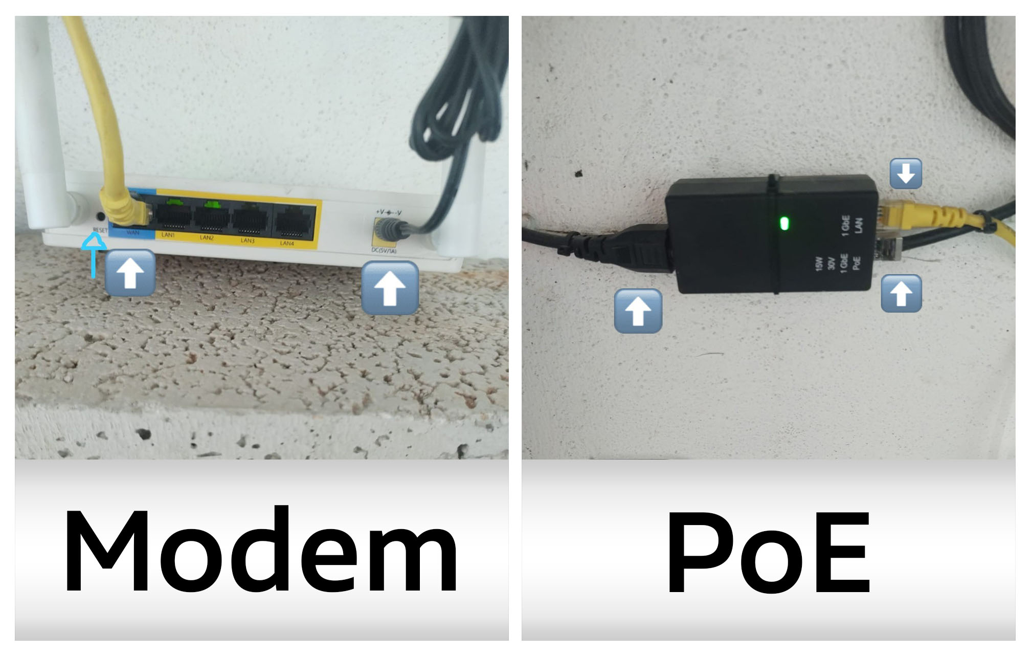 Apoyenos con los siguiente:- Desconecte su equipo de la corriente eléctrica por 10 segundos. - Desconecte todo los cables marcados en la imagen con una flecha - Después de 10 segundos vuelva a conectar el equipo y todos los cables, revisando que conecte todo exactamente donde estaban - Revisar que todos los cables de red estén bien conectados presionándolos hasta que suene "click". - Revisar que todos los cables de la corriente eléctrica estén bien conectados o que no haya falso contacto en las conexiones. - Esperamos unos minutos para confirmar que se restablezca el servicio. |
